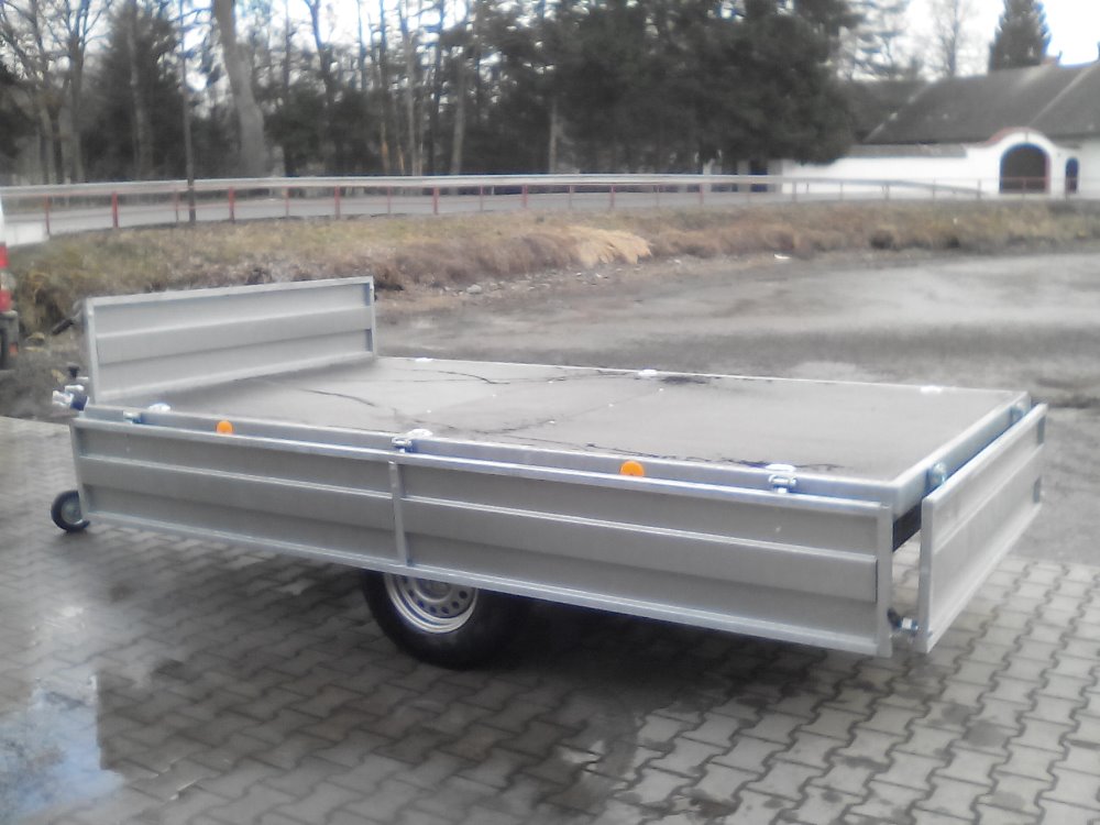 Podlaha korby je vyrobena z překližky o síle 12-15mm nebo plech 2-3mm. Bočnice přívěsu jsou plechové-žarový zinek nebo z překližky. Objem ložného prostoru je možný zvětšit montáží nadstavby korby. Podvozek přívěsu je žárově zinkován pro zaručení korozní odolnosti.